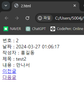 - 이 때, 게시물이 1개 이상이라면 이전글, 다음글이라는 표시도 각각 해준다.