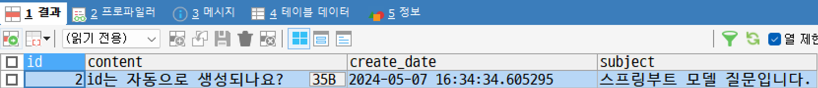 - findById() 메서드는 question 테이블에 저장된 데이터 중, id 값을 조건으로 삼아 조회하는 역할을 한다.