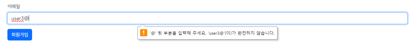- 사용자 ID 또는 이메일 주소가 이미 존재할 경우에는 DataIntegrityViolationException이라는 예외가 발생하므로 '이미 등록된 사용자입니다.' 라는 에러 메시지가 화면에 표시되도록 하였다.