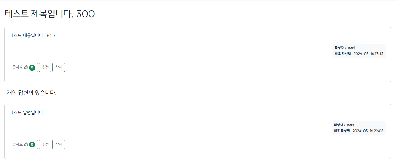 | [SpringBoot] 답변 수정 및 삭제 (0) | 2024.05.15 |