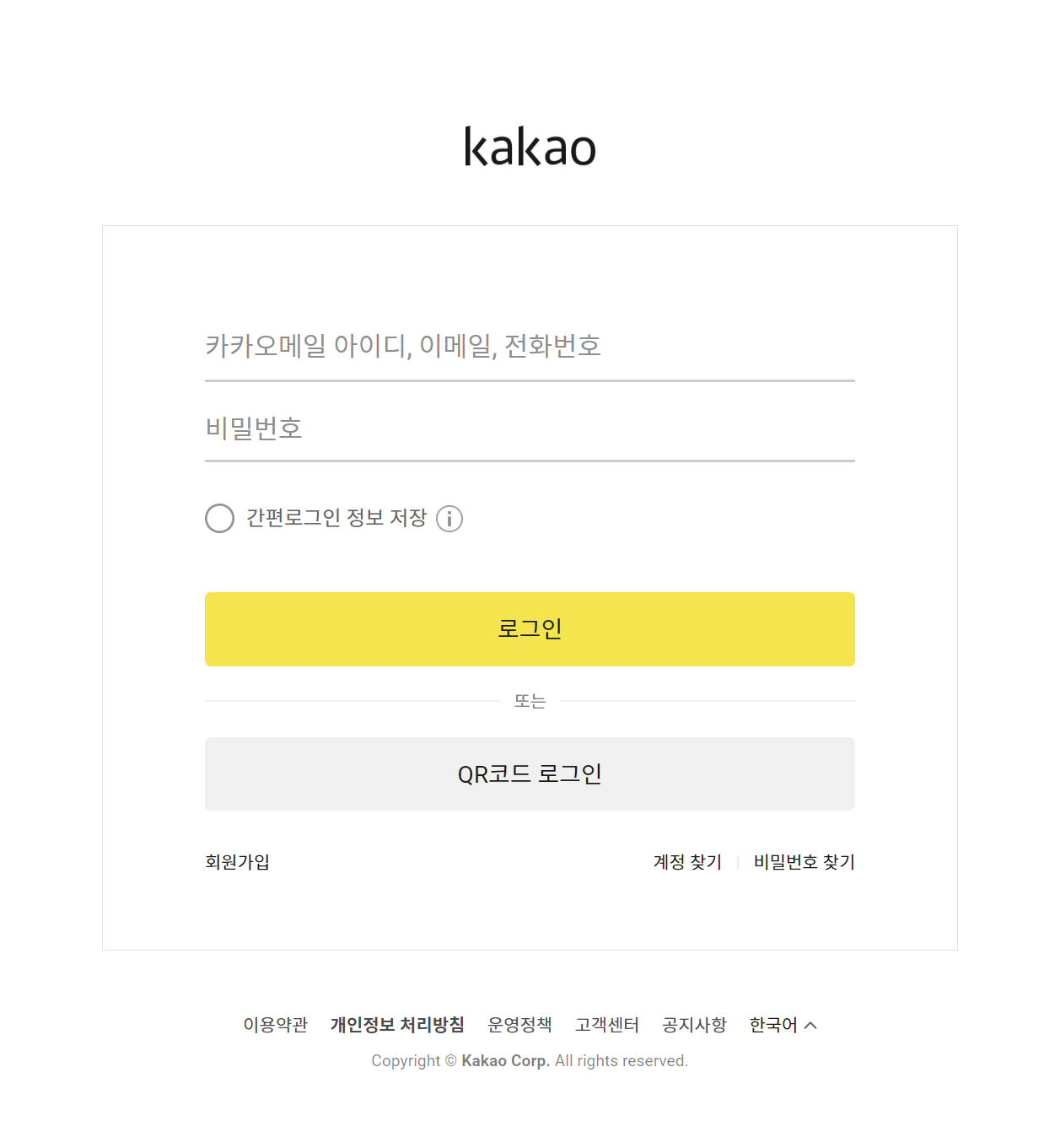 - 이번에는 위와 같은 소셜 로그인 중 카카오톡을 이용한 방법을 알아봅시다.
