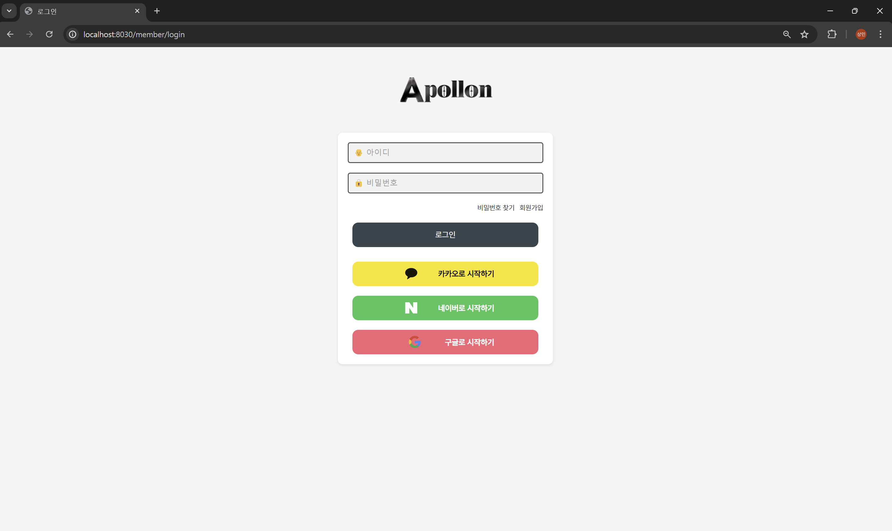 - Apollon 서비스에 가입된 모든 회원들은 상단 헤더의 로그인 메뉴를 통해 서비스 이용을 위한 로그인이 가능합니다.