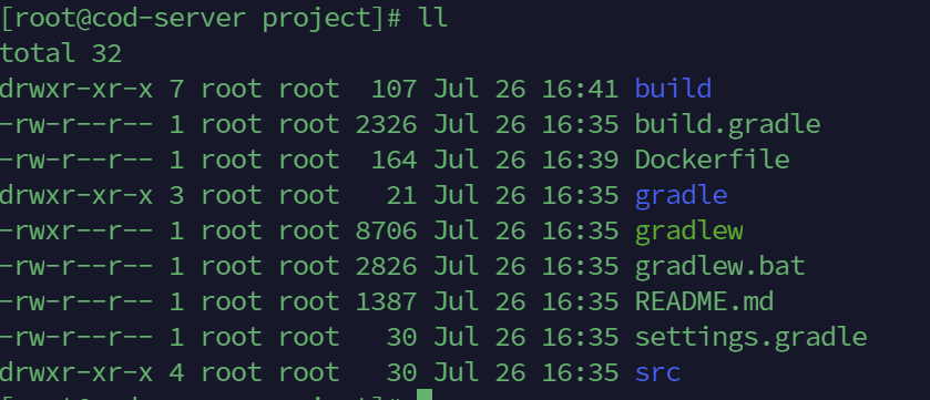 - 빌드가 완료되면 스프링부트를 실행해보면 되는데 명령어에서 말하는 jar_파일_이름은 /docker_projects/프로젝트명/project/build/libs 디렉토리로 이동해서 확인할 수 있다.