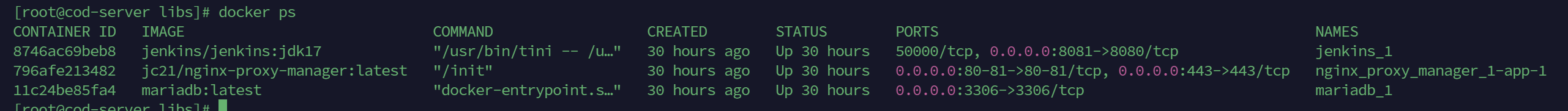 - 이미지 실행까지 완료되면 사진과 같이 docker ps라는 명령어를 입력했을 때 MariaDB와 프로젝트 이미지가 나타나야된다.