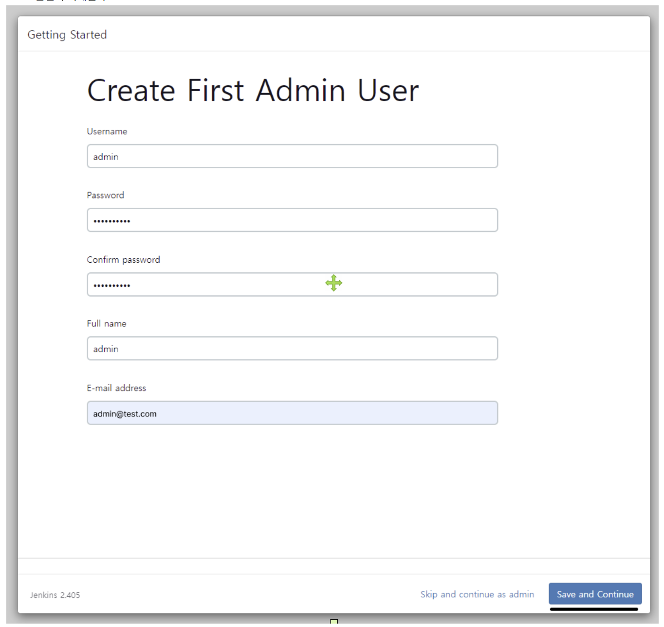 - 명령어를 입력한 후 비밀번호를 확인했다면, https://jenkins.도메인명을 입력하면 젠킨스에 접속하게 되고 초기 비밀번호를 입력하면 계정 정보를 변경할 수 있다.