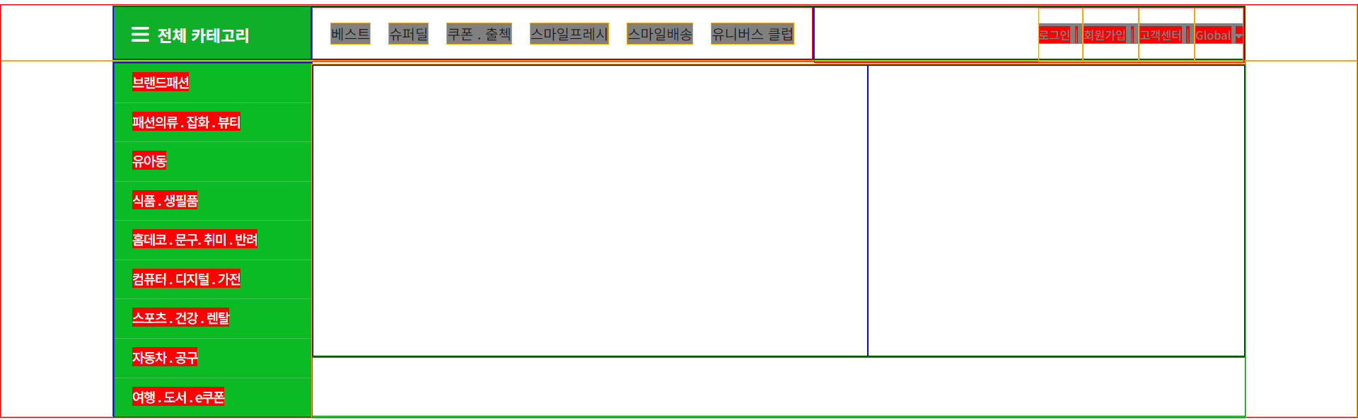 - 완성된 G마켓 홈페이지 디자인은 아래 그림과 같다. 우리가 만들어야할 마지막 목표는 2차 메뉴 옆 3차 메뉴이다.