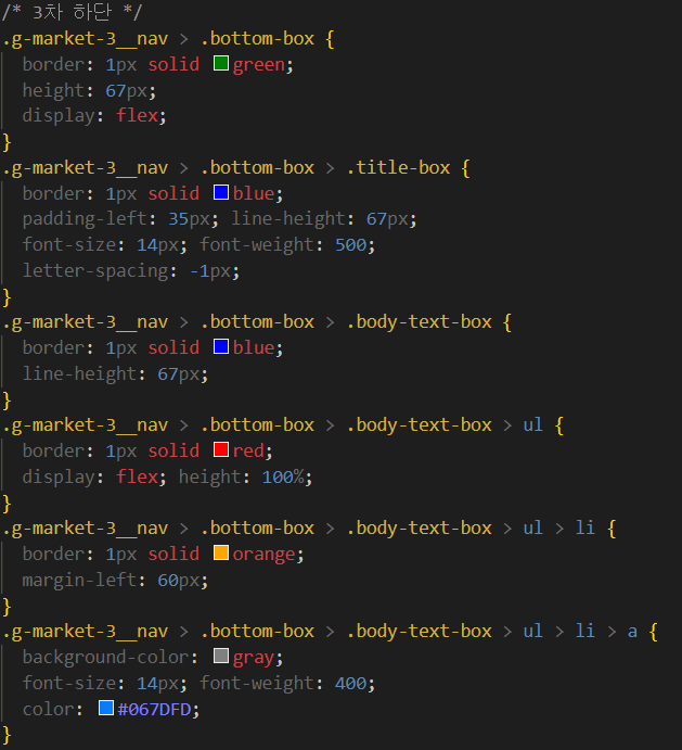 - 마지막으로 3차 메뉴의 하단 bottom-box를 완성해보자.