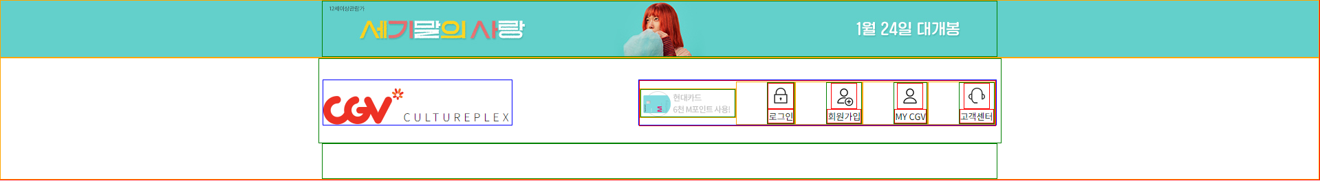 - CGV의 로고는 해당 홈페이지의 개발자모드(F12)를 통해 이미지를 가져왔다.