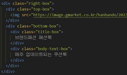 - right-box 하위 엘리먼트에는 디자인 구조상 그림이 위치한 top-box와 텍스트가 위치한 bottom-box를 추가한다.
