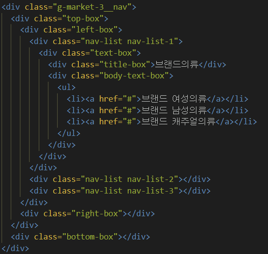 - 3개의 메뉴는 left-box 아래에 nav-list 태그를 추가해야한다.