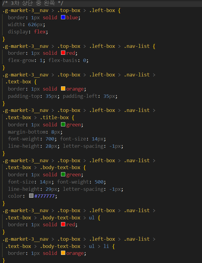 - 3차 메뉴의 top-box 중 left-box를 먼저 완성해보자.